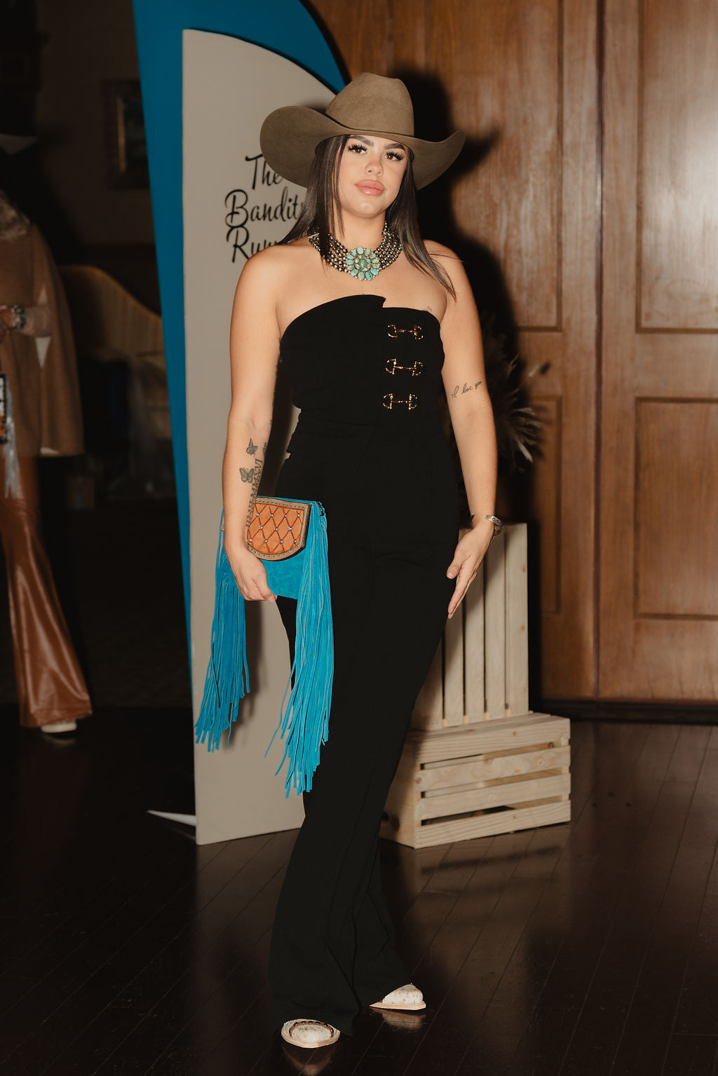 Snaffle bit gold hardware detail black strapless jumpsuit